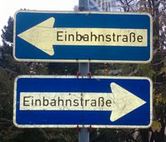 "Hey, was machen Sie? Sie sind in einer Einbahnstraße, da dürfen Sie nur in eine Richtung fahren!"