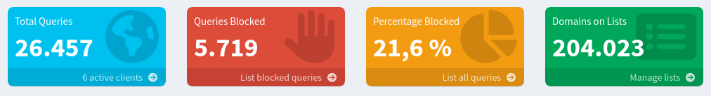 Dann teste ich jetzt meine Pi-hole Installation eine Zeit lang und dann schauen wir mal weiter. Vielleicht wird es zukünftig ein eigenes Netzgerät, vielleicht lasse ich auch alles so weiterlaufen. Jetzt sammele ich erst einmal die Daten - über die Werbetreibenden.
