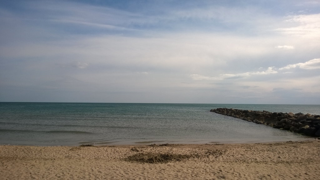 20:37 Uhr - ein Stück (4 km) am Strand von Cap d'Agde (Frankreich) im Sonnenuntergang