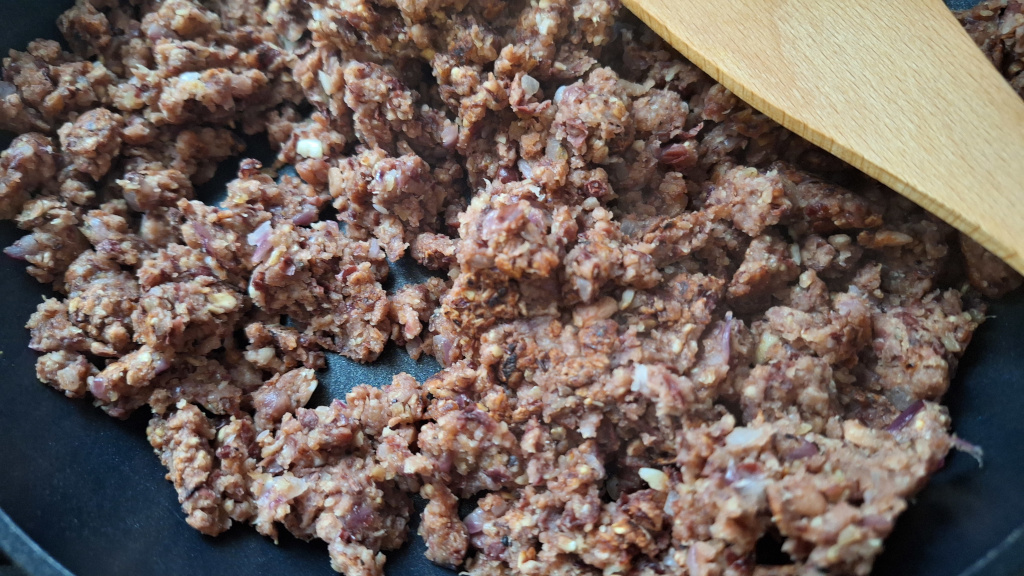 Aber das war ja auch erst der erste Versuch. Der nächste wird sicherlich schon besser werden, denn ab sofort gehört der Hackfleischersatz zu meinem Standardrepertoire!