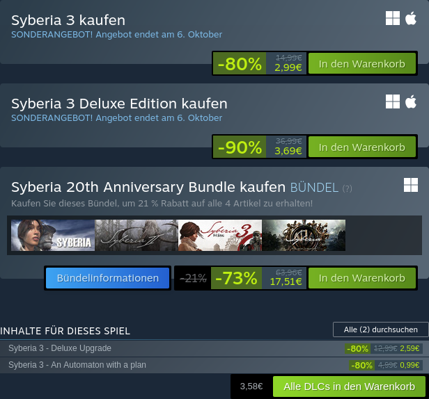 Gerade kam dann noch ein Angebot von Steam: Syberia 3 für 2,99 Euro! Auch 'Zocken' kann unter Linux einfach und günstig sein!